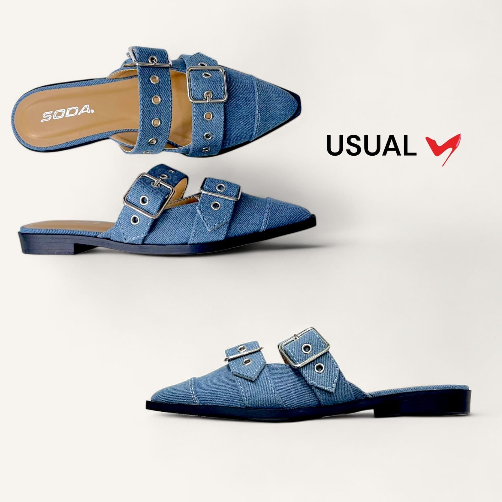 Zapato cerrado de punta y de piso con detalles metálicos