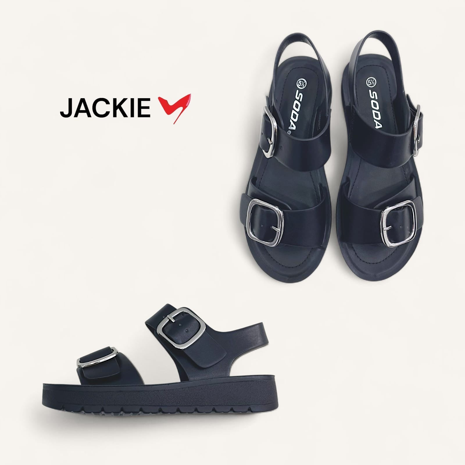 Sandalia negra de piso cómoda con abrochadora ajustable